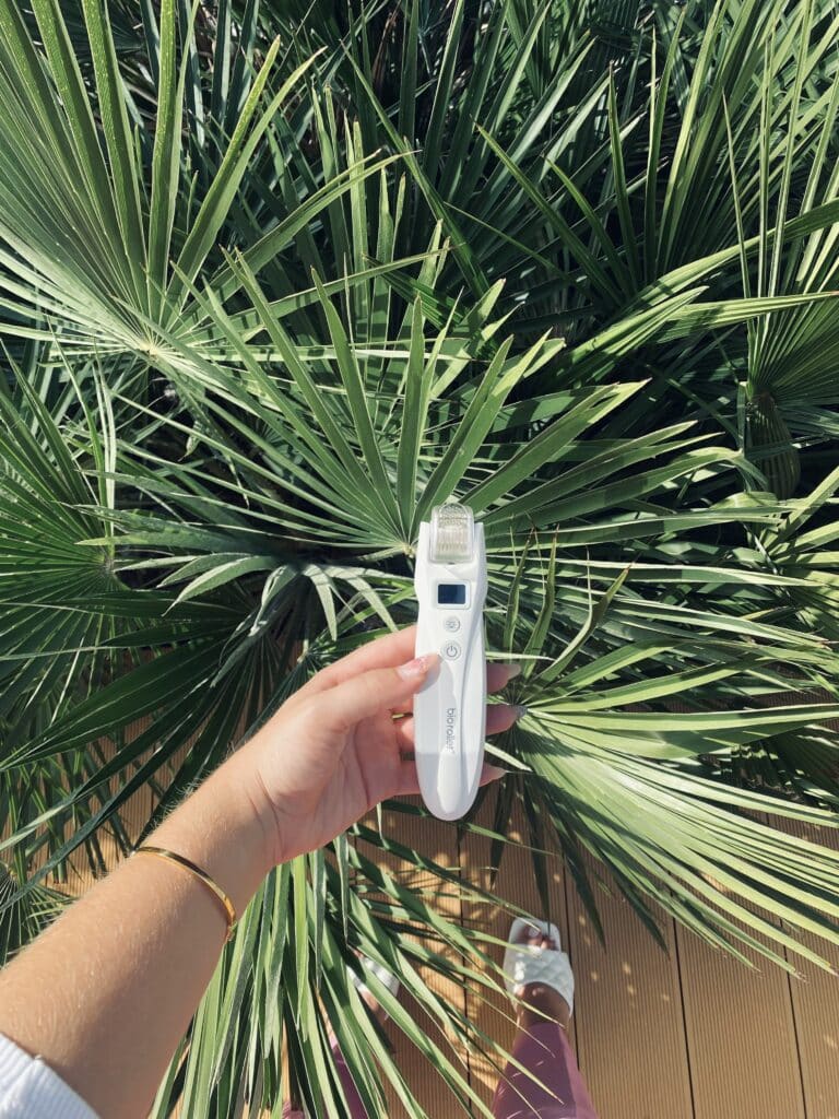- Διαθέτει Derma Needling: Το Bio roller είναι η νέα γενιά στο Microneedling. Κατά την χρήση της, προκαλεί διαδερμία οδηγώντας το δέρμα στην Νεοκολλαγονογένεση που έχει τελικά ως αποτέλεσμα την ανάπλαση, αλλά και τη σύσφιξη του δέρματος. Διεγείρει τους ινοβλάστες, ώστε να παράγουν νέο κολλαγόνο και ελαστίνη με φυσικό τρόπο, ανακτώντας έτσι την χαμένη σφριγηλότητα και λάμψη. Το microneedling διεισδύει στην επιδερμίδα και δημιουργεί μικροκανάλια στο δέρμα. Αυτό δίνει μια οδό για τα προϊόντα δέρματος να διεισδύσουν πιο εύκολα, ενισχύοντας σημαντικά την αποτελεσματικότητά τους. Αυτά τα κανάλια κλείνουν άμεσα.